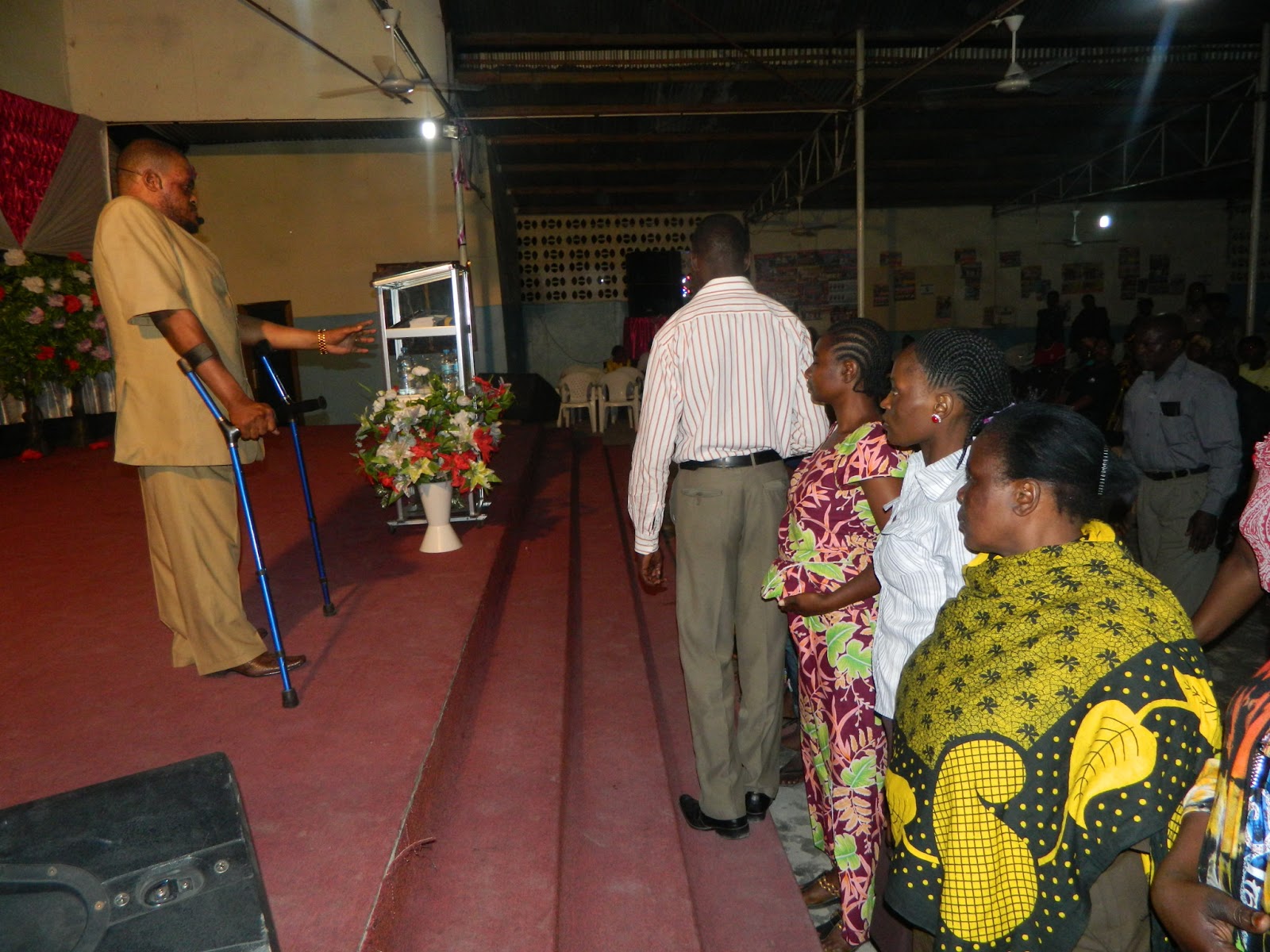 Kulia ni mwimbaji wa nyimbo za injili Tanzania Upendo Nkone akitabiriwa na kuombewa